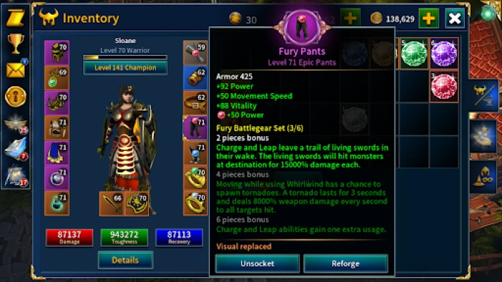 Progress from common to rare, epic and legendary gear. Find gemstones that fit in your armor’s sockets. Craft socketed rings and amulets, and fuse three of them into a higher quality one.