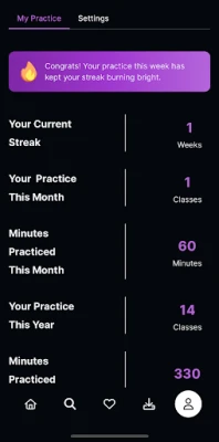 Within the App, find your saved and favorite classes and track your individual progress within programs you’ve started.