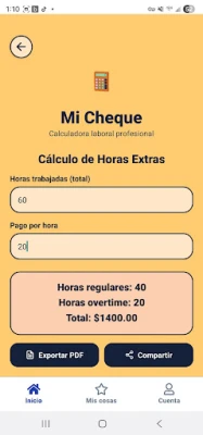 Mi Cheque USA te ayuda a calcular tu salario de forma rápida y precisa. Ingresa tus horas, tarifa por hora, overtime, impuestos, descansos y deducciones — y obtén un desglose claro de tu pago total.