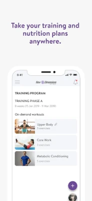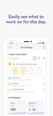 With the New Dimensions App, you can start tracking your workouts and meals, measuring results, and achieving your fitness goals, all with the help of your personal trainer.