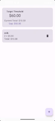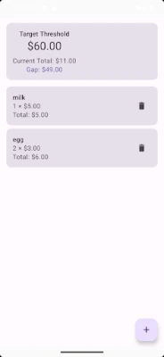 * Add/edit/remove items. Each item contains a name, unit price and quantity * Set a threshold * show the current total and the gap to the threshold
