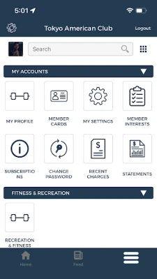 Mobile App for use by members of Tokyo American Club. Through this app, members can access their profiles and addresses, easily reach out to the club or contact the club, and stay updated with the latest news and updates via the feed screen. Membership in Tokyo American Club is required to activate the app.